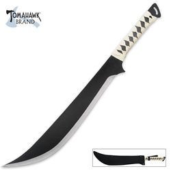Well steadinessd Scimitar-style blade. This fantasy sword features one-piece stainless steel building with a black end and delivers superb chopping and slashing power! The scimitar-style blade measures 17 1/2" and supplys excellent stability. The handle features a black-and-white simulated leather-based wrap. This sword measures 27 1/2" general in size and includes a heavy accountability nylon sheath with snap fasteners. Tomahawk, XL1308..