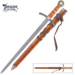 22 1/2" Overall. This collectible reproduction is crafted after a medieval brief sword and will make a effective addition to your hellostorical collection! This sword options a chrome steel 17" traditional pattern blade. The forged steel deal with offers an ornate defend and pommel together with a brown composite grip. This item measures 22 1/2" overall and includes a coordinating black sheath. Tomahawk, XL1123.. This collectible reproduction is crafted after a medieval short sword and will make a effective addition to your historical collection! This sword features a stainless-steel 17" traditional pattern blade. The cast metal deal with supplys an ornate shield and pommel together with a brown composite grip. This item measures 22 1/2" overall and features a coordinating black sheath. Tomahawk, XL1123. Best "Medieval Broadsword by Tomahawk" For Sale.